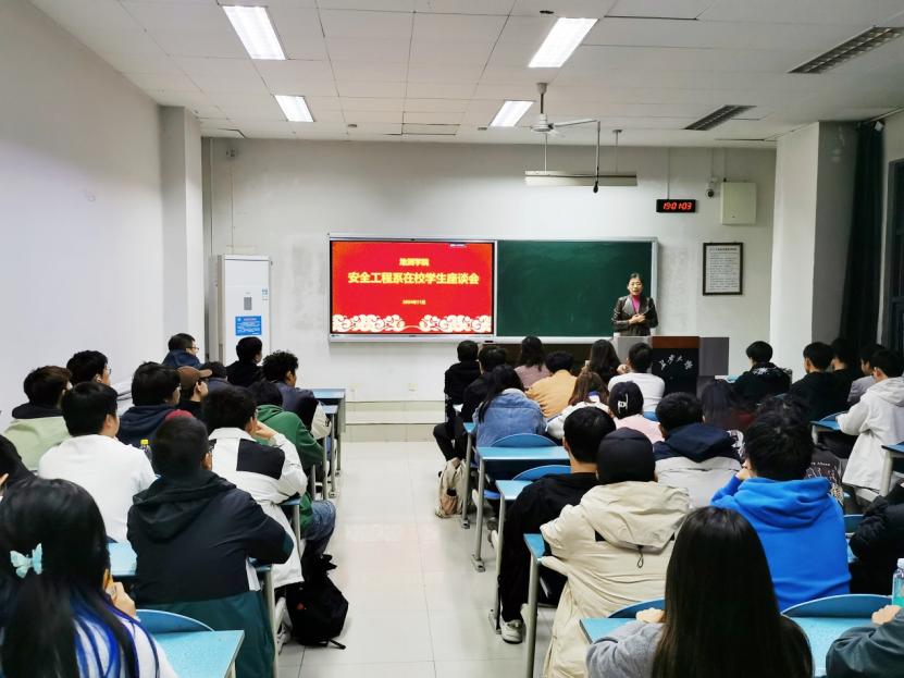 安全工程系座谈会由系副主任屈璐主持,她首先介绍了安全工程专业的行业特色、现状和未来发展等内容,对学生反馈的问题进行一对一解答,并表示同学们遇到的困惑与挑战是系里学院关注的重点,鼓励同学们在学习过程中积极主动,培养独立思考和自主学习的能力。教师代表就实习情况、推免考研、就业方向等问题给予详实的回答及中肯建议。