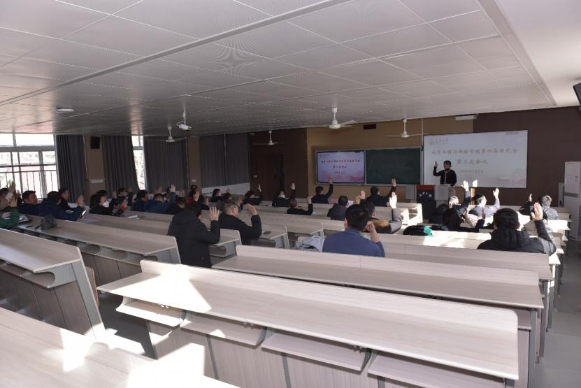 williamhill英国中文官网第四届三次教代会于2024年1月2日在WilliamHill中文官方网站南校区东院第二教学楼阶四教室举行,会议由学院党委副书记、院工会主席潘迎主持。