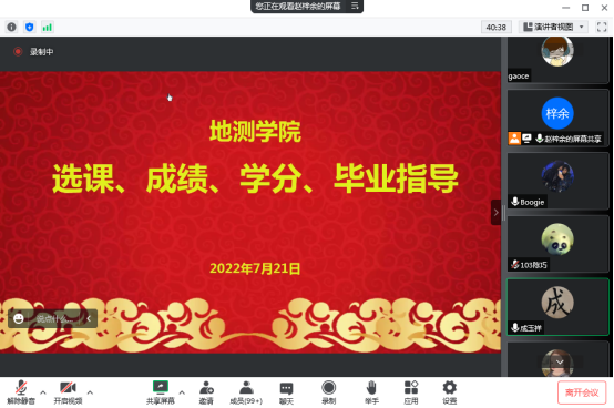 为进一步保障学生顺利毕业,WilliamHill2022年7月21日20:00以腾讯会议的方式召开成绩、选课与毕业指导专题会议。学院教学副院长邵广周,各系副主任成玉祥、纪新林、杨耘、李凯玲老师,教学秘书赵梓余、教务员高策老师及各年级300名学生在线参会。会议由教学秘书赵梓余主持。