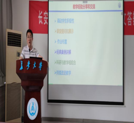 其次,张继锋老师模拟课堂教学,展示了实际教学中的技巧方法,并深入浅出地从“如何调动学生积极性、如何进行课堂提问和展示、作业布置技巧、经典案例讲解、科教结合、如何进行持续改进教学”等方面分享了自己在十几年教学过程中总结出的独特的方式方法与教学体悟,并强调“讲课持续改进”“课程思政”的重要性。分享内容深刻有建树,能不断启发青年教师提高教学能力与综合素养。