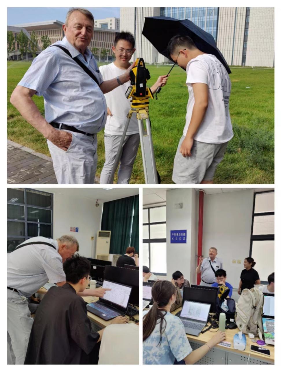 Milan Konecny教授现场观摩测绘地信实习,并与实习学生和指导老师交流互动