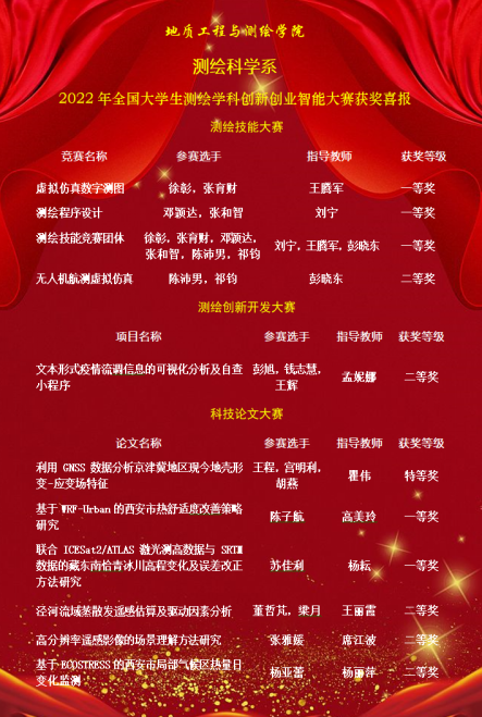 2022年7月30日,教育部高等学校测绘专业教学指导委员会和中国测绘学会教育委员会(以下简称“两委会”)在官方网站公布了“2021年全国高校大学生测绘类系列竞赛”的获奖名单。WilliamHill中文官方网站取得了特等奖1项,一等奖5项,二等奖5项的好成绩。