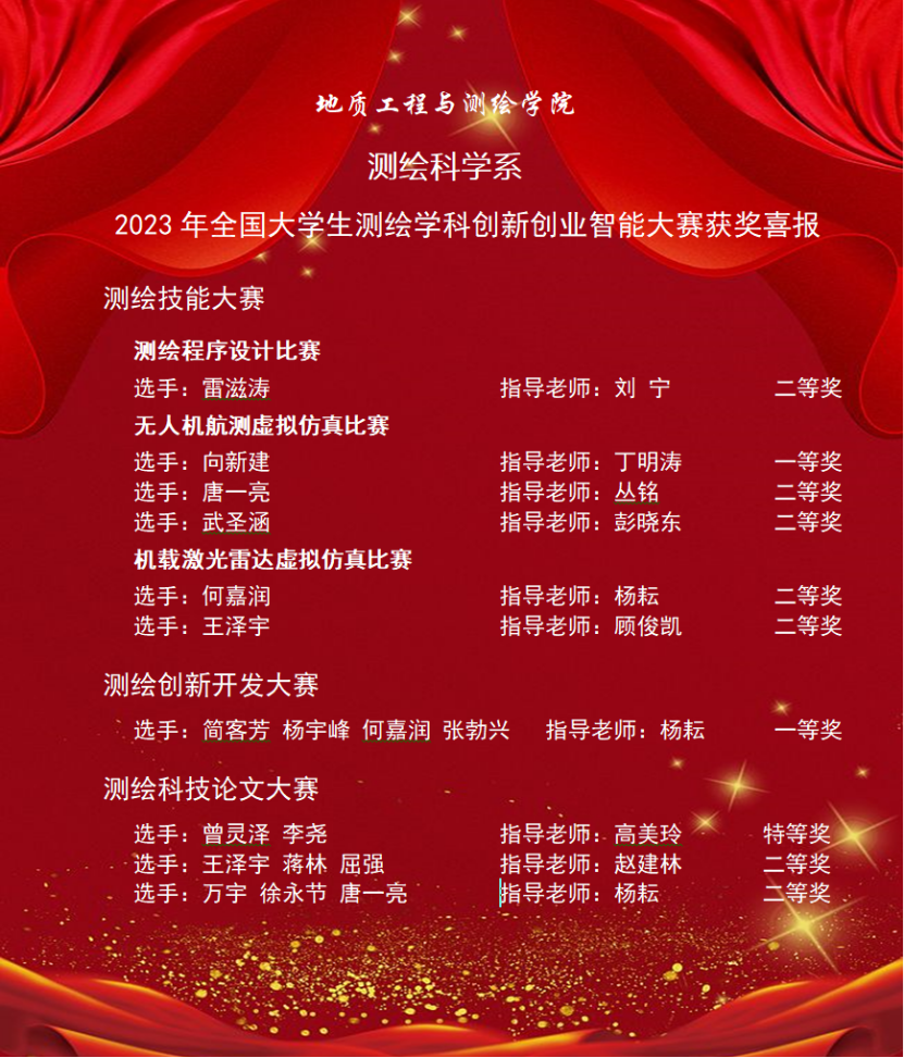 WilliamHill中文官方网站测绘专业本科生获奖名单
