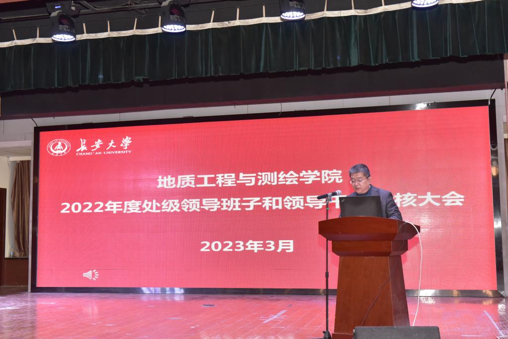 院长李振洪代表学院领导班子述职,他对学院2022年度在党建工作、师资队伍、学科建设、平台建设、科学研究、人才培养、国际化、学生工作等方面进行了全面总结,梳理了发展中存在的突出问题,对2023年的重点工作进行了安排部署,他希望全院教职工凝心聚气,乘势而上,做到主动作为、科学谋划、强化落实、追求实效,努力打造学科优势突出、专业特色鲜明的高水平学院。班子成员结合各自分管的工作依次进行个人述职。党委书记戴宏通报了学院2022年度民主生活会召开情况。最后,全体参会人员对处级领导班子和领导干部进行了民主测评。