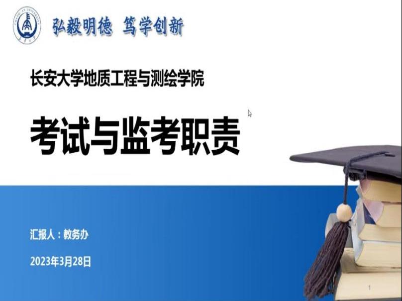 为保证学院监考工作更规范、严谨,3月27-3月31日williamhill英国中文官网在各系分场次召开教师监考职责系列培训会4场。williamhill英国中文官网副书记副院长荆琳、副院长邵广周、教学秘书赵梓余,以及地工系、物探系、测绘系、安工系大部分教师参加了培训会。会议由各系主任主持。