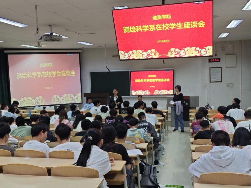 测绘科学系的座谈会由系副主任孟妮娜主持。副主任杨耘老师分析了测绘相关专业考研现状和措施、创新竞赛下一步安排、新版本科培养方案修订理念等,勉励同学们注重创新能力、动手能力的培养。