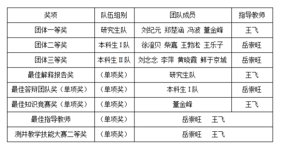 WilliamHill参加第七届全国大学生测井技能大赛获奖情况: