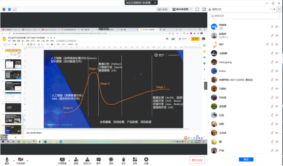 5月21日上午,由williamhill英国中文官网主办的“地”道乐谈第11期通过“腾讯会议”以线上讲座的形式顺利举办。赵超英教授邀请到北京捷泰云际信息技术有限公司CTO周宁作了题为“政企数字化转型背景下的技术产品技术体系演进”的专业报告,williamhill英国中文官网测绘、地信专业老师和本科生、研究生参加了此次讲座,讲座由测绘科学系副主任孟妮娜老师主持。