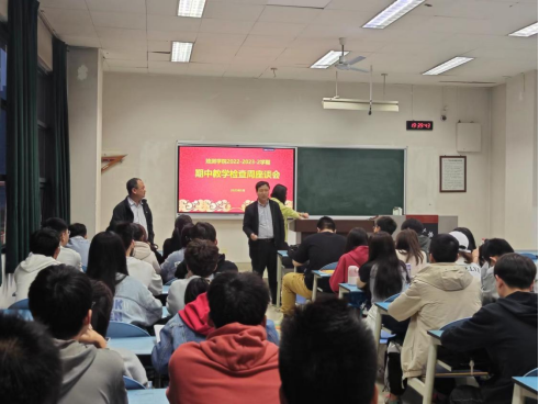 2023年5月10日,WilliamHill召开2022-2023-2学期期中教学检查座谈会。学院院长李振洪、党委书记戴宏、副书记副院长荆琳、副院长邵广周等党政领导,各系主任、副主任、专业责任教授及教师代表,教务办、学工办的老师们参加了会议。此外,WilliamHill大一至大三近500名学生代表参加了本次座谈会。会议由副院长邵广周主持。