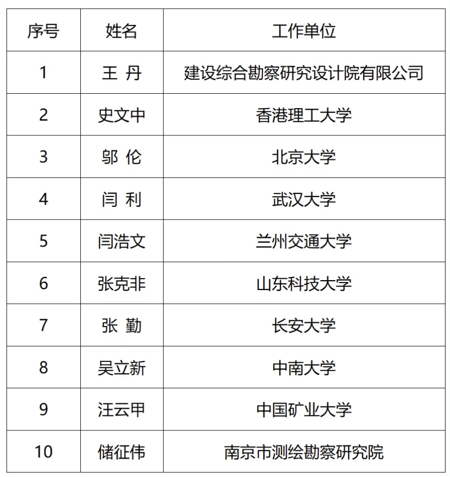 图1中国测绘学会会士入选名单