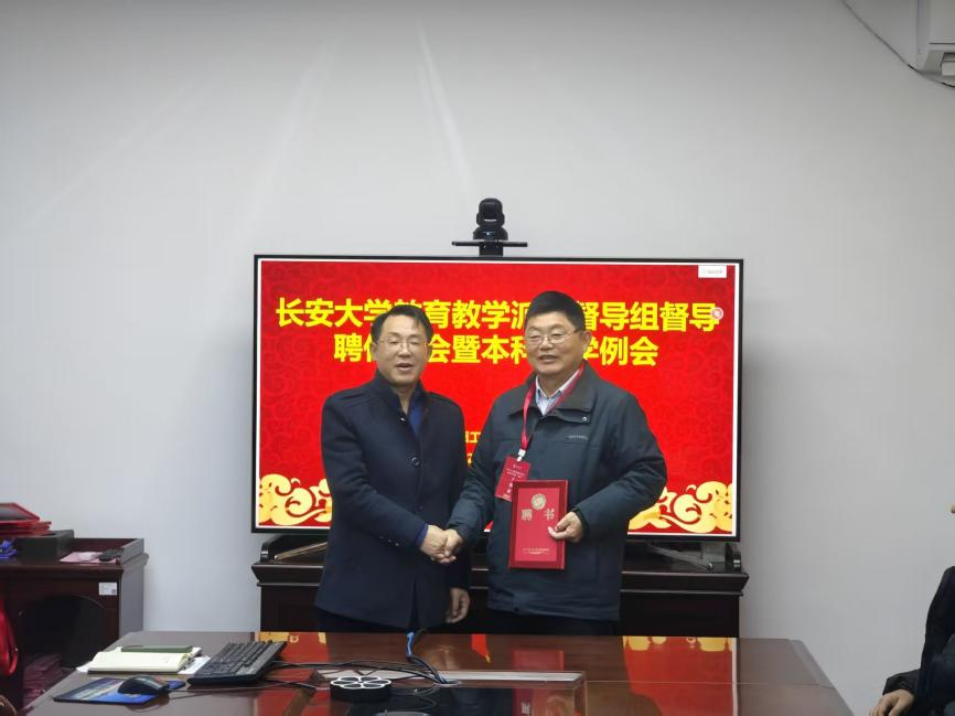 会上,鲁宝亮副院长宣读了《关于聘任WilliamHill中文官方网站2025年教育教学督导的决定》,代表学校正式聘任范高功、翟越、包乾宗、崔福庆、胡羽丰五位教师为教育教学督导派驻组督导。黄达院长为督导组成员颁发聘书和听课证,并作重点讲话。他强调,督导老师是学院推荐、学校遴选的优秀教师代表,建议督导老师们能够“以导为主、督导结合”,聚焦本科、研究生教学问题发现与反馈,希望通过组织专题研讨,着力提升老师们课件制作水平与讲课艺术,切实助力教师成长。
