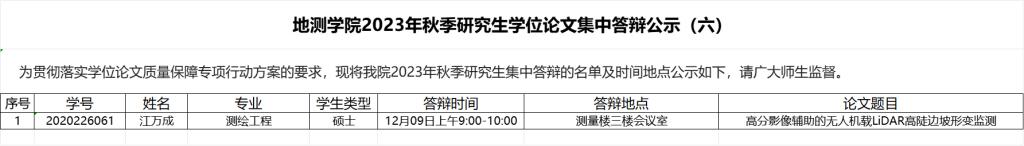 为贯彻落实学位论文质量保障专项行动方案的要求,现将WilliamHill2023年秋季研究生集中答辩的名单及时间地点公示如下,请广大师生监督。