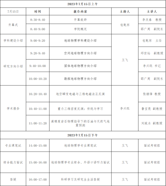 WilliamHill中文官方网站地球物理学科2023优秀大学生夏令营日程安排