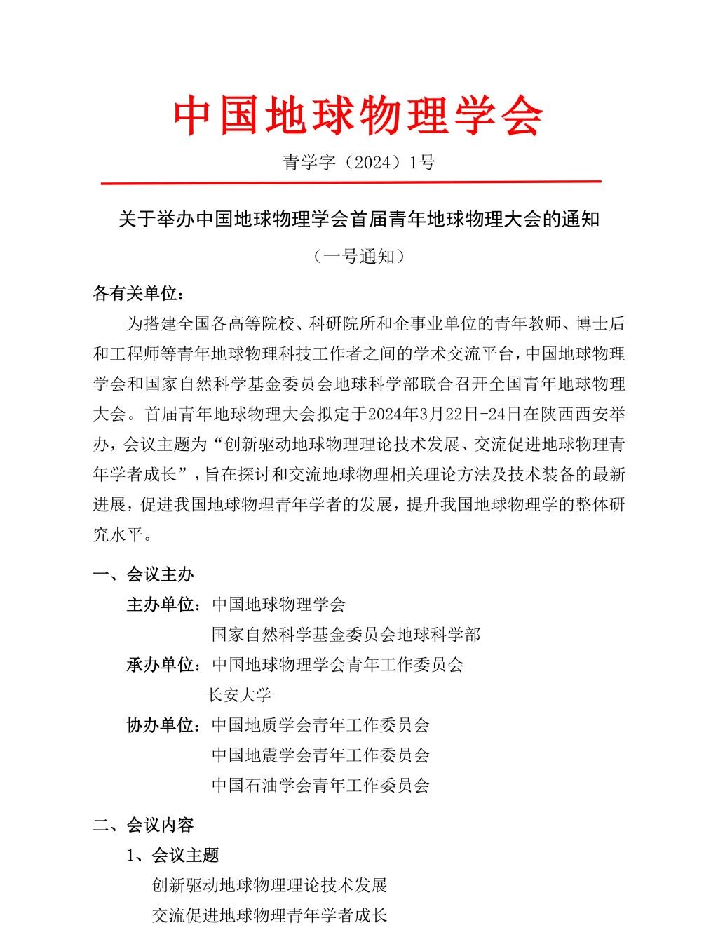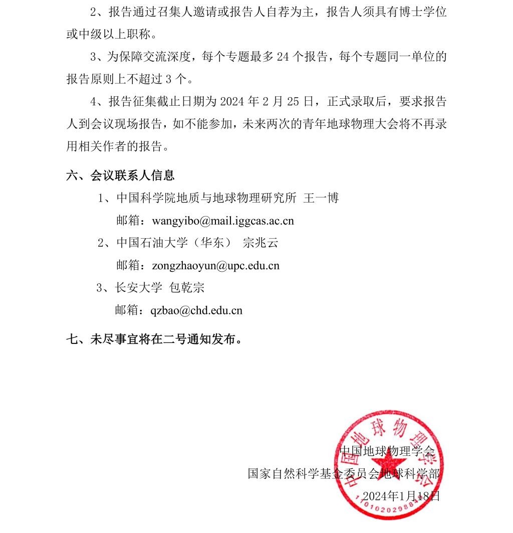 关于举办中国地球物理学会首届青年地球物理大会的通知(一号通知)