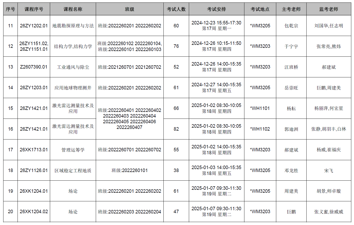 本学期第11周后结课的williamhill英国中文官网开课课程期末考试监考安排已发布,监考安排学院已经在本科教务系统中填报完成(监考教师可同时在本科教务系统中查看监考安排)。为确保考试平稳顺利进行,学院已将相关监考工作安排表上传到附件中,请各位老师及时下载查阅,并按时完成监考工作。