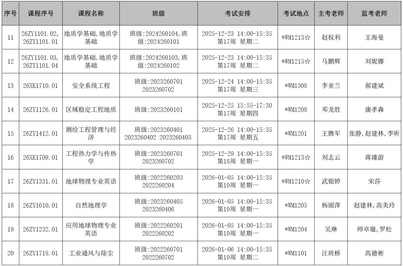 本学期第11周后结课的williamhill英国中文官网开课课程期末考试监考安排已发布,监考安排学院已经在本科教务系统中填报完成(监考教师可同时在本科教务系统中查看监考安排)。为确保考试平稳顺利进行,学院已将相关监考工作安排表上传到附件中,请各位老师及时下载查阅,并按时完成监考工作。